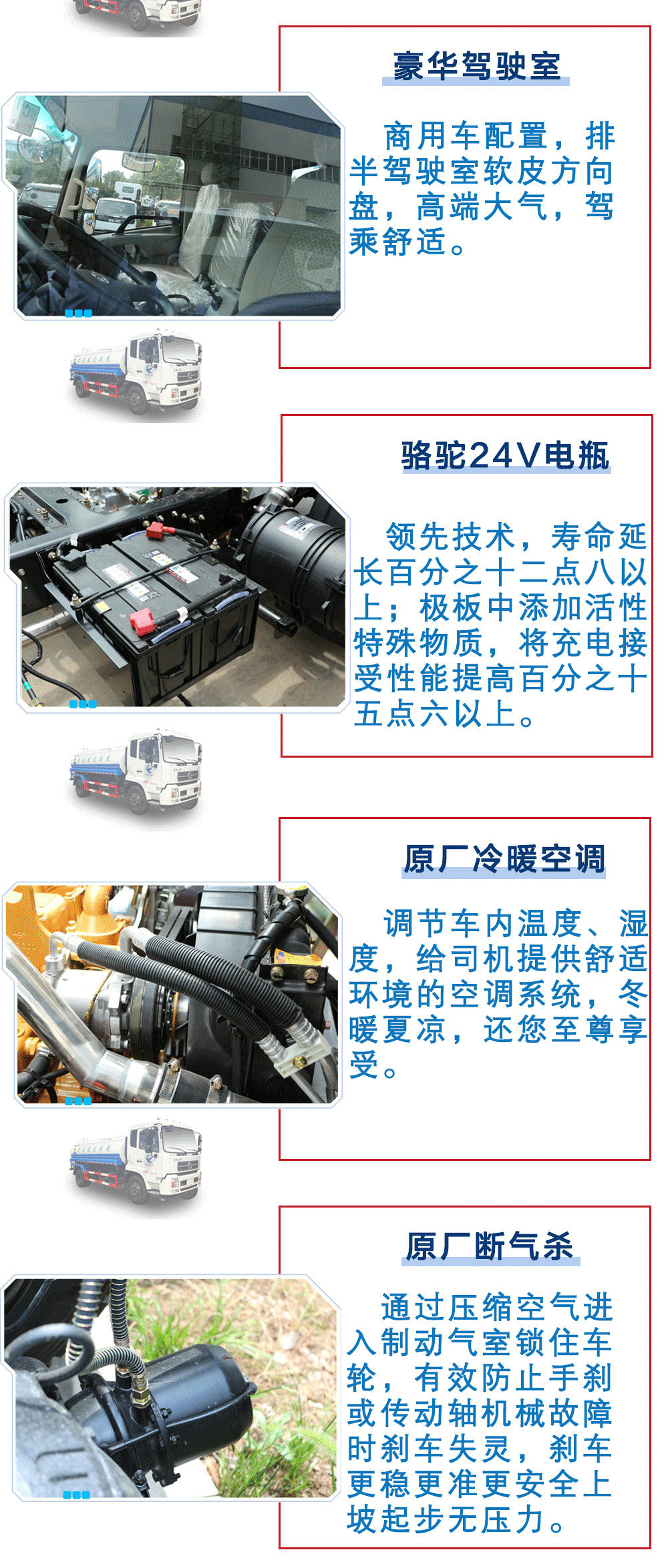 | 其他 | 1.,運(yùn)輸介質(zhì):水,密度:1000千克/立方米,罐體有效容積:9.24立方米;帶后操作平臺(tái)時(shí),整車長(zhǎng)度/軸距/后懸/離去角/罐體外形尺寸(長(zhǎng)×長(zhǎng)軸×短軸)的對(duì)應(yīng)關(guān)系為(mm): 8400/4700/2270/13/5000×2000×1360; 8200/4500/2270/13/5000×2000×1360; 8200/4500/2270/13/4500×2160×1400; 7900/4200/2270/13/4500×2160×1400。 2. 選裝不帶后操作平臺(tái)時(shí),整車長(zhǎng)度/軸距/后懸/離去角/罐體外形尺寸 (長(zhǎng)×長(zhǎng)軸×短軸)的對(duì)應(yīng)關(guān)系為(mm): 8000/4700/1870/15/5000×2000×1360; 7800/4500/1870/15/5000×2000×1360; 7800/4500/1870/15/4500×2160×1400; 7500/4200/1870/15/4500×2160×1400。 3. 當(dāng)選裝后操作平臺(tái)時(shí)可選裝噴霧機(jī)組。4.側(cè)防護(hù)及后下部防護(hù)裝置均采用Q235A材質(zhì),均采用焊接連接,后下部防護(hù)尺寸:150×50(mm),離地面高度500mm。5. ABS型號(hào):3631010-C2000,4460046440;生產(chǎn)廠家:東科克諾爾商用車制動(dòng)系統(tǒng)(十堰)有限公司,威伯科汽車控制系統(tǒng)(中國(guó))有限公司。6. 罐體可選裝橢圓罐體,車輛文字噴圖位置、顏色及局部細(xì)節(jié)可變化。7.隨底盤選裝駕駛室。 | ||