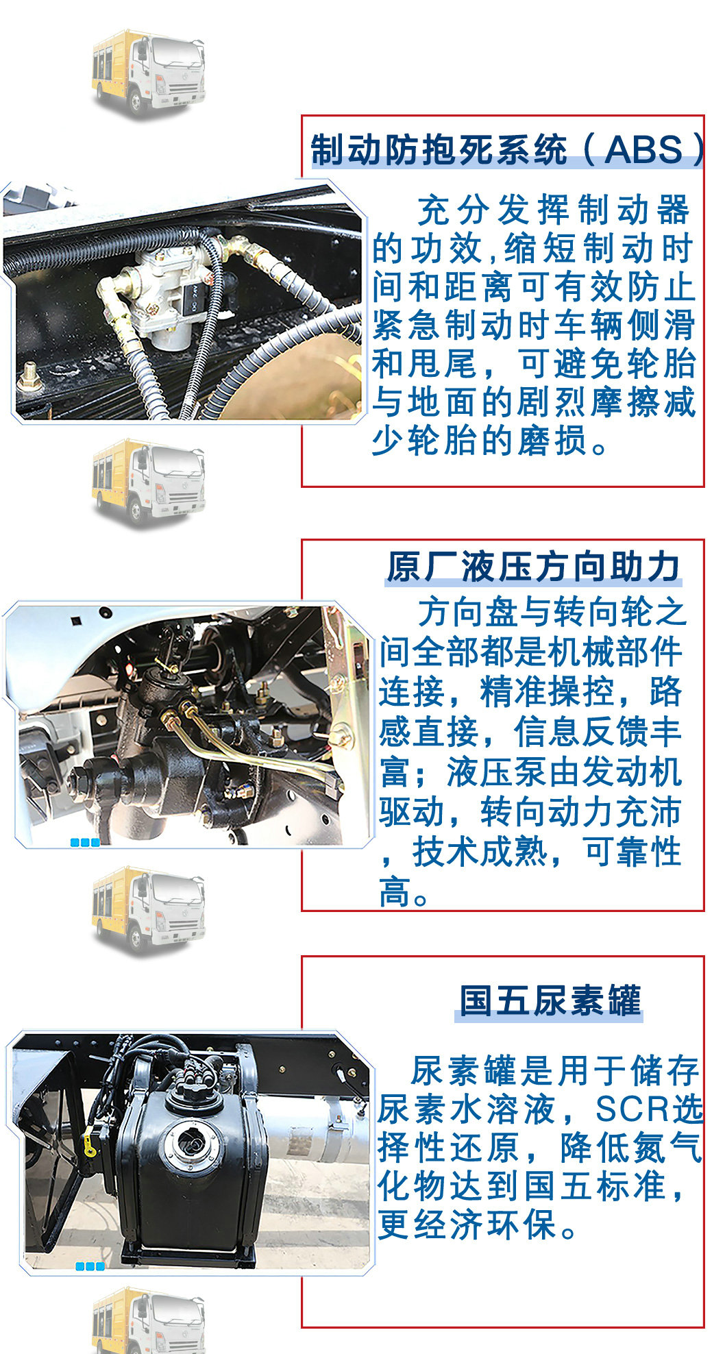 | 其他 | 該車(chē)內(nèi)部水箱裝載質(zhì)量:2185kg(2250)kg,可用于污水設(shè)備清洗.污水處理車(chē)工作原理:通過(guò)排污泵將污水抽入污水分離器,在污水分離器中將水與雜質(zhì)分離,最終將不含雜質(zhì)的水排出。側(cè)、后防護(hù)由專(zhuān)用裝置代替.外觀顏色可變化,文字噴涂位置可變化,隨底盤(pán)選裝駕駛室;ABS生產(chǎn)廠(chǎng)家:威伯科汽車(chē)控制系統(tǒng)(中國(guó))有限公司,型號(hào):ABS-E 4S/4M;浙江萬(wàn)安科技股份有限公司,型號(hào):VIE ABS-II。 | ||