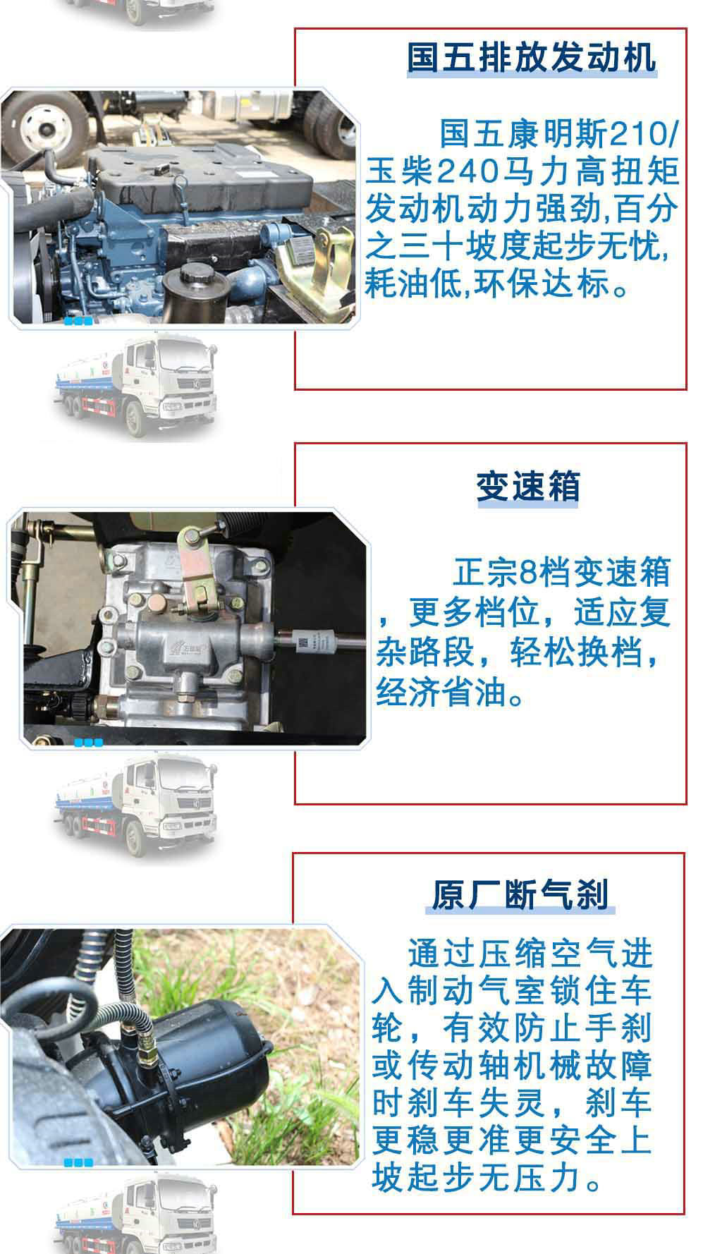 | 其他 | 1,罐體有效容積18.55立方米,介質(zhì):丙酮水溶液,密度:800千克/立方米,罐體尺寸為(mm): 6900×2400×1550;2,防護(hù)材料:Q235A碳鋼,連接方式:左右側(cè)面及后下部防護(hù)均采用焊接連接,后部防護(hù)斷面尺寸(mm):150×50,后部防護(hù)離地高度(mm):550;3,ABS生產(chǎn)廠家: 東科克諾爾商用車制動系統(tǒng)(十堰)有限公司,型號:3631010-C2000;4,文字噴涂位置,車輛顏色及局部細(xì)節(jié)可變化;5,隨底盤選裝駕駛室,選裝駕駛室遮陽板與側(cè)面臥鋪開窗口。 | ||