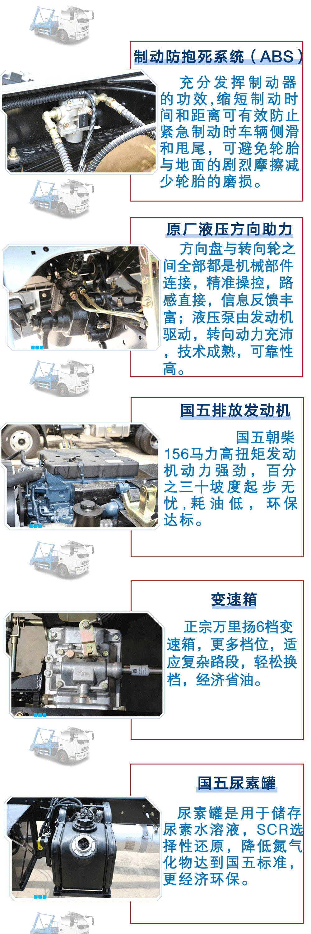 | 其他 | 1、隨底盤(pán)選裝駕駛室。2、該車整車長(zhǎng)/軸距對(duì)應(yīng)關(guān)系為(mm)6800,6780/3800,6308,6288/3308。3、防護(hù)材料:Q235A碳鋼,連接方式:左右側(cè)面防護(hù)與副梁、底板采用焊接連接,后下部防護(hù)與車架采用焊接連接,后部防護(hù)斷面尺寸(mm):120×50,后部防護(hù)離地高度(mm):430。4、ABS型號(hào):ABS/ASR-24V-4S/4M,廠家:襄陽(yáng)東風(fēng)隆誠(chéng)機(jī)械有限責(zé)任公司。5、車輛顏色、字體噴涂和局部細(xì)節(jié)可變化。6、發(fā)動(dòng)機(jī)與油耗值對(duì)應(yīng)關(guān)系:CY4SK251/18.7,YC4FA130-50/18.7,ISF3.8s5141/18.6,ZD30D15-5N/18.5,4DX23-140E5/17.8,YN38CRE1/17.9。 | ||
