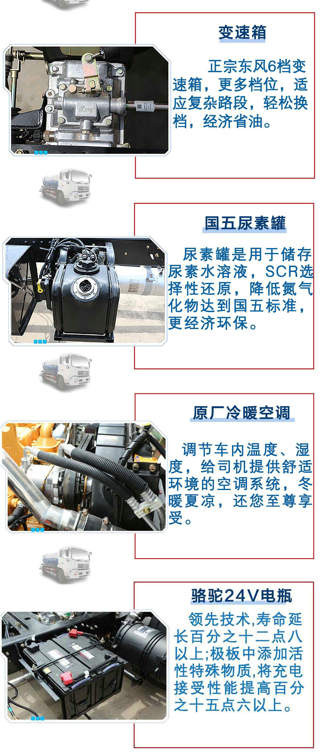 | 其他 | 1、有效容積:8.92立方米,罐體外形尺寸(直線段長(zhǎng)×直徑)/軸距/整車長(zhǎng)的對(duì)應(yīng)關(guān)系為(mm):4300×1700/(4500,4200,3800)/(8100,7800,7400);4500×1600/4700/8300。2、軸距變化引起的質(zhì)量變化在3%以內(nèi),可忽略不計(jì)。3、防護(hù)材料:Q235A碳鋼,連接方式:左右側(cè)面及后下部防護(hù)均采用焊接連接,后部防護(hù)斷面尺寸(mm):120×50,后部防護(hù)離地高度(mm):410。4、ABS型號(hào):3631010-C2000,4460046440;生產(chǎn)廠家:東科克諾爾商用車制動(dòng)系統(tǒng)(十堰)有限公司,威伯科汽車控制系統(tǒng)(中國(guó))有限公司;該車安裝帶衛(wèi)星定位功能的行駛記錄儀。5、專用裝置:罐體,主要用于下水道污泥抽吸、清撈和裝卸。6、隨底盤選裝駕駛室。7、可選裝取力器左置外觀和帶上走臺(tái)外觀。 | ||