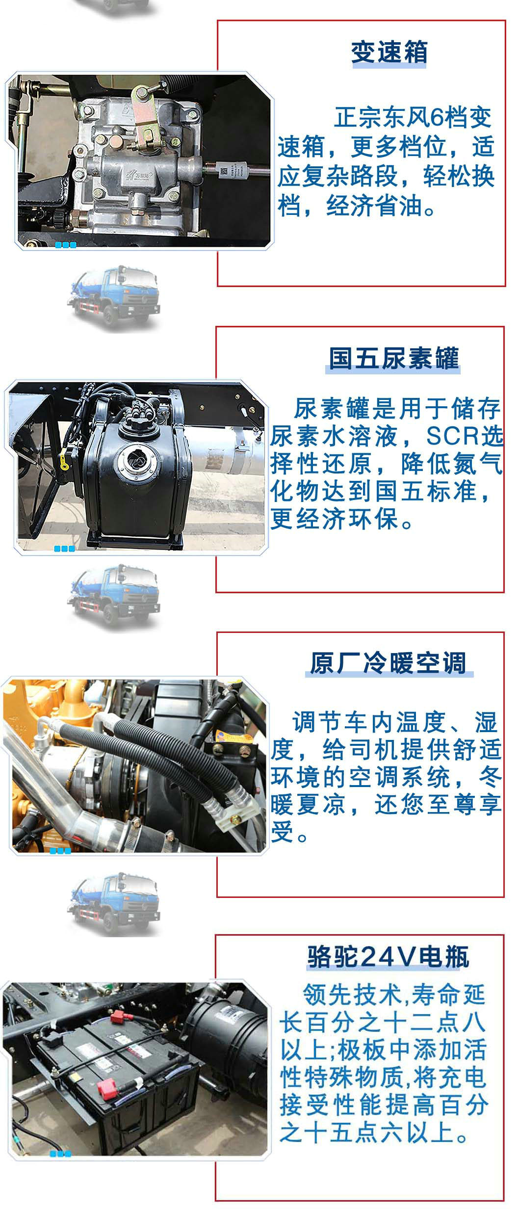| 其他 | 1,罐體有效容積:9.56立方米,罐體外形尺寸(直線段長×直徑)/軸距的對應關系為(mm):4500×1700/4700,4300×1700/4500。2,整車長/前懸/軸距的對應關系為(mm):8000/1440/4700,7810/1250/4700,7800/1440/4500,7610/1250/4500。軸距變化引起的質量變化在3%以內,可忽略不計。3,隨底盤選裝駕駛室。防護材料:Q235A碳鋼,連接方式:左右側面及后下部防護均采用焊接連接,后部防護斷面尺寸(mm):120×50,后部防護離地高度(mm):480。4,安裝帶ABS的底盤,ABS型號為3631010-C2000,生產廠家為東風電子科技股份有限公司制動系統(tǒng)公司;該車安裝帶衛(wèi)星定位功能的行駛記錄儀。5,文字噴圖位置和車輛顏色可變化。6,專用裝置:罐體,用于下水道污泥抽吸、清撈、裝卸。 | ||