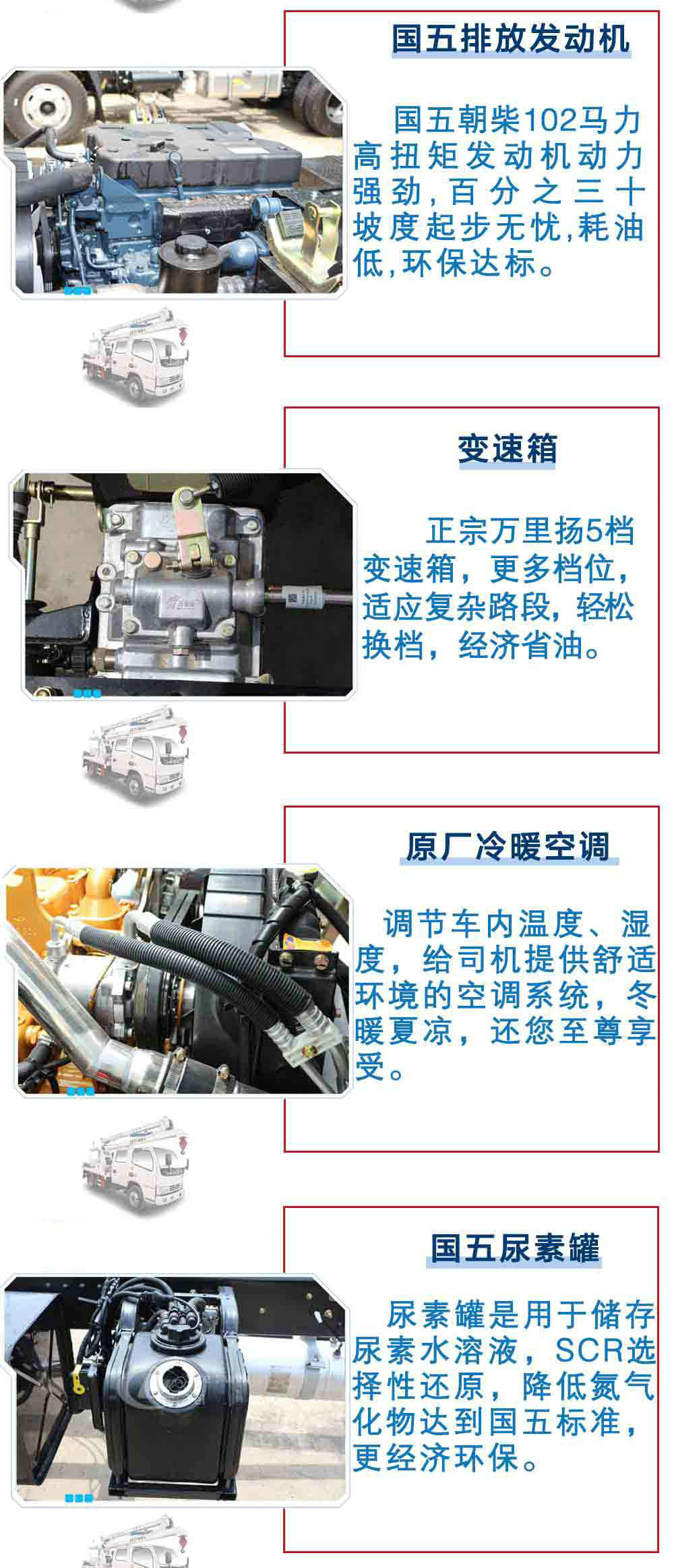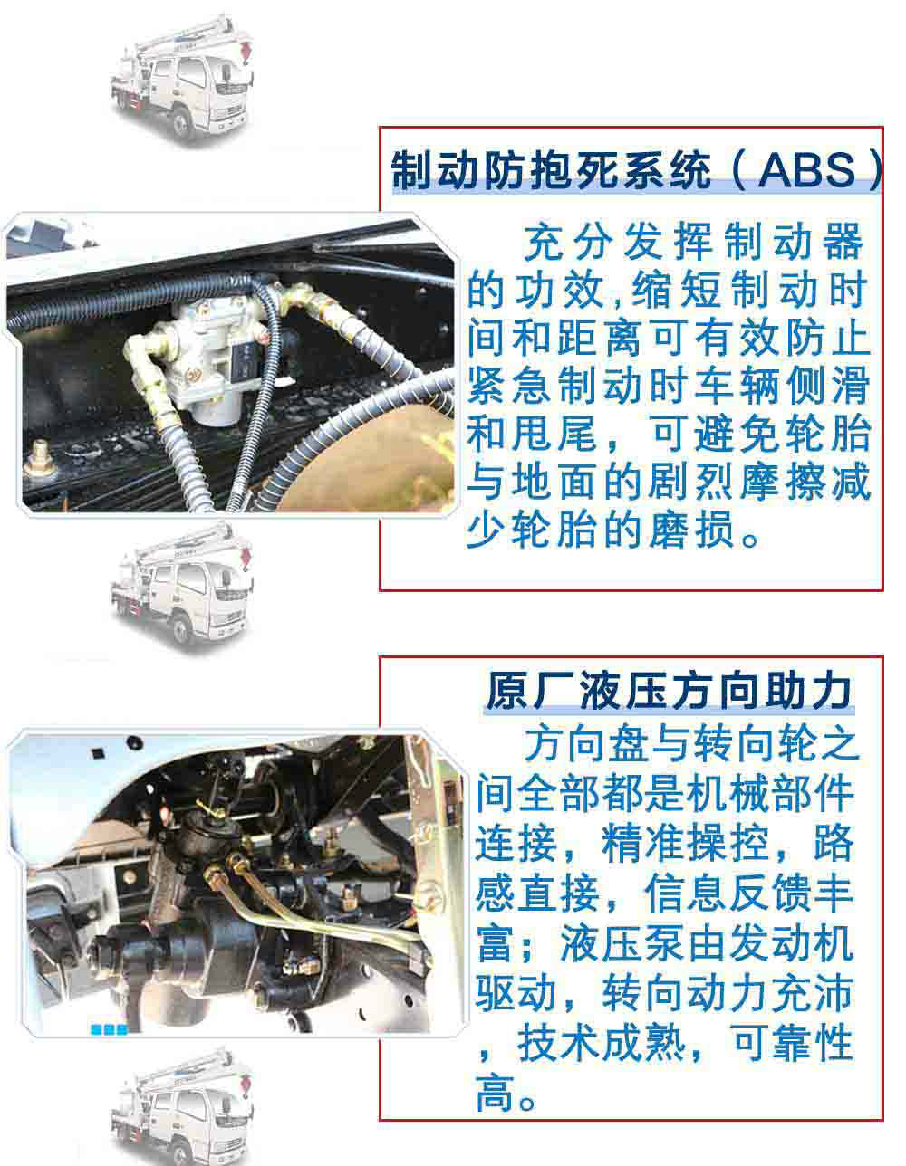 12米高空作業(yè)車專用配置:東風(fēng)高空作業(yè)車作業(yè)高度為12米,液壓360度全回轉(zhuǎn),三節(jié)折疊臂,單液壓舉升缸,帶雙向平衡閥,電控操作舉升臂,四支液壓油缸可調(diào)式支腿帶雙向液壓鎖(支腿操作為手動(dòng)操作,可單獨(dú)控制),帶1噸吊鉤,東風(fēng)高空作業(yè)車設(shè)備結(jié)構(gòu)簡(jiǎn)單,堅(jiān)固耐用,操作方便可靠。獨(dú)特的全回轉(zhuǎn)三折臂液壓操控系統(tǒng)設(shè)計(jì)使工作人員操作更平穩(wěn),能更安全的將工作人員送到14米的高空作業(yè),進(jìn)行維修、安裝、攝影、造船、化工、電力、剪枝、更換路燈及其他工程搶修作