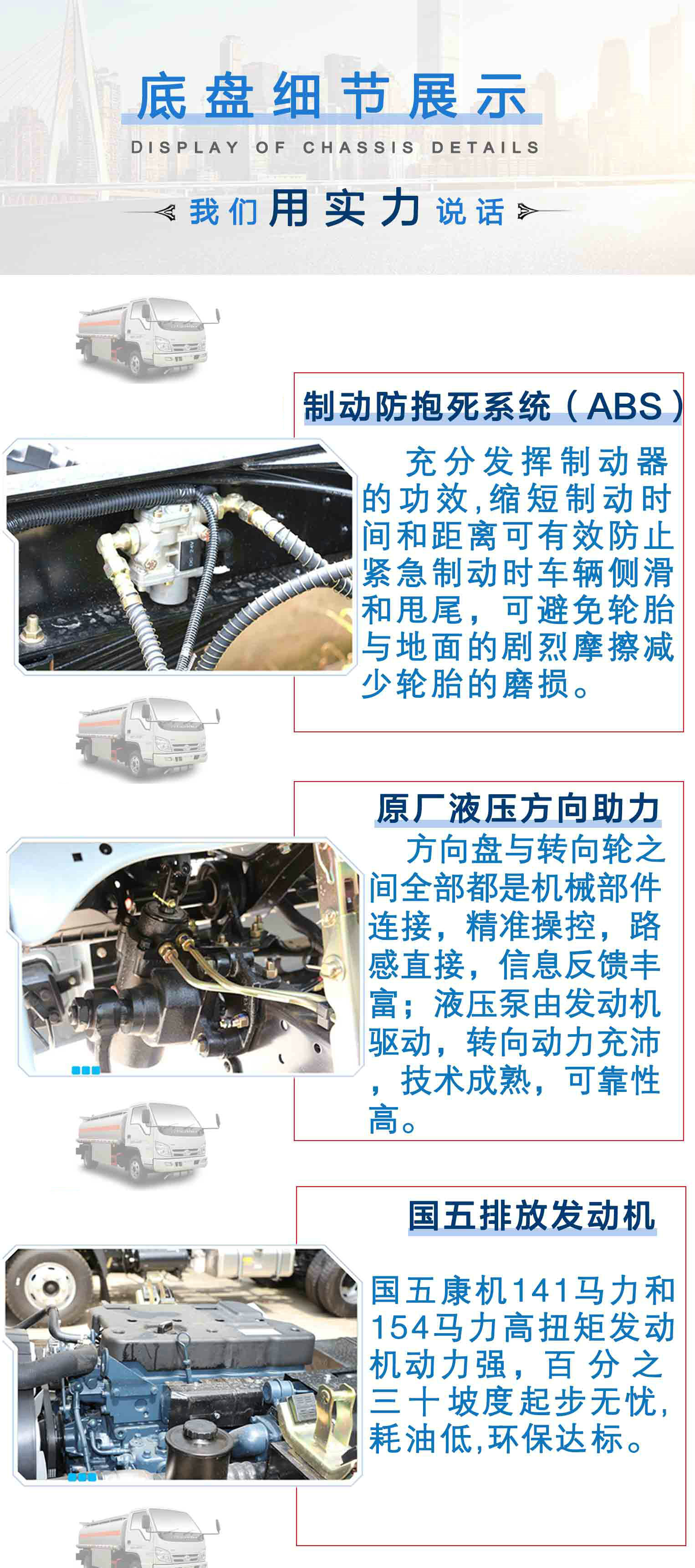 油罐車:又稱流動(dòng)加油車、電腦稅控加油車、引油槽車、裝油車、運(yùn)油車、拉油車、石油運(yùn)輸車、食用油運(yùn)輸車,主要用作石油的衍生品(汽油、柴油、原油、潤滑油及煤焦油等油品)的運(yùn)輸和儲(chǔ)藏。根據(jù)不同的用途和使用環(huán)境有多種加油或運(yùn)油功能,具有吸油、泵油,多種油分裝、分放等功能。運(yùn)油車專用部分由罐體、取力器、傳動(dòng)軸、齒輪油泵、管網(wǎng)系統(tǒng)等部件組成。 管網(wǎng)系統(tǒng)由油泵、三通四位球閥、雙向球閥、濾網(wǎng)、管道組成。