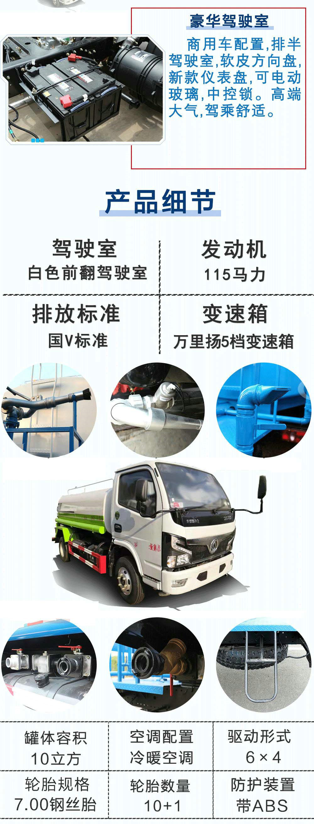 | 其他 | 1、該車僅選用3308mm軸距,罐體有效容積為4.04立方米,罐體尺寸為(mm):3400×1600×1100,3300×1600×1100。2、防護(hù)材料:Q235B碳鋼,連接方式:左右側(cè)面及后下部防護(hù)均采用焊接連接,后部防護(hù)斷面尺寸(mm):120×50,后部防護(hù)離地高度(mm):430。3、ABS型號(hào)/廠家:ABS/ASR-12V-4S/4M/襄陽(yáng)東風(fēng)隆誠(chéng)機(jī)械有限責(zé)任公司。4、專用裝置:罐體,主要用于路面灑水及園林綠化。5、隨底盤(pán)選裝駕駛室。 | ||