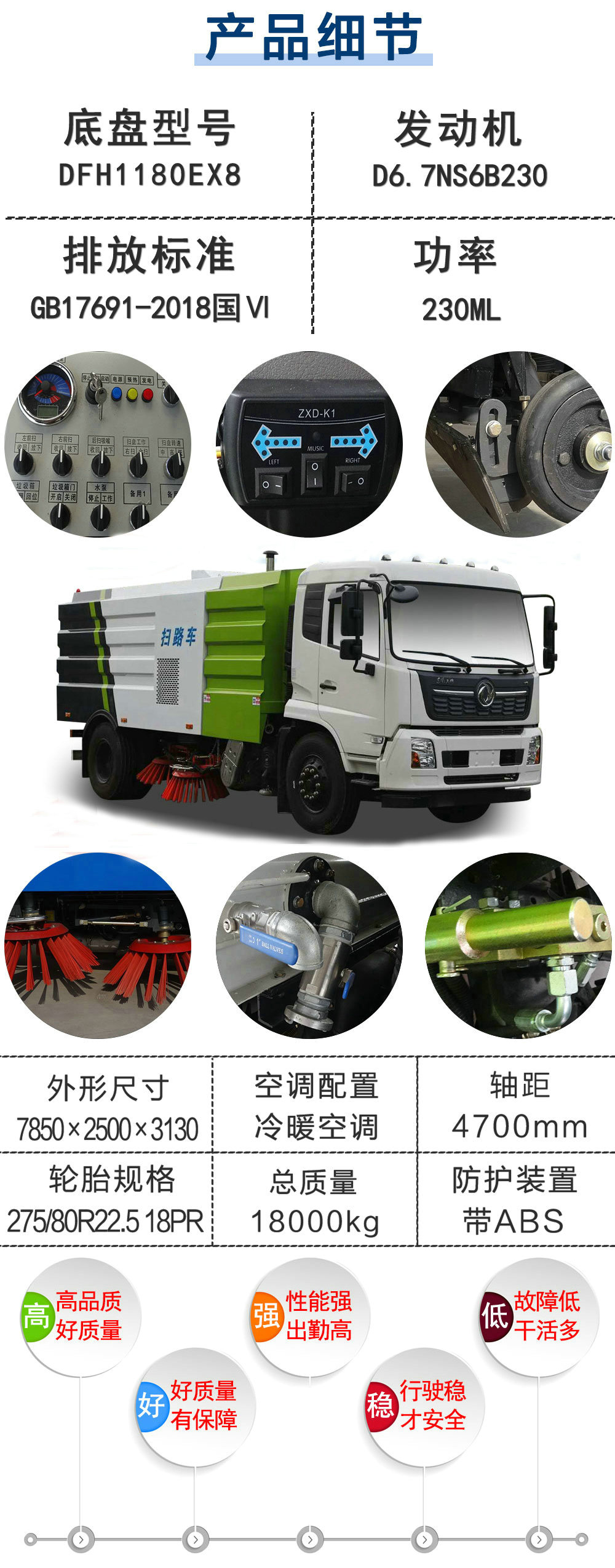 | 其他 | 此車為道路清掃專用車輛,專用裝置為掃刷.防護材料:Q235A碳鋼,連接方式:左右側(cè)面防護為掃刷,離地高為(mm):180,后下部防護與車架采用焊接連接,后下部防護尺寸:50×120(mm),離地面高度470mm.隨底盤選裝駕駛室.ABS型號/生產(chǎn)廠家:3631010-C2000/東科克諾爾商用車制動系統(tǒng)(十堰)有限公司,ABS 8/東科克諾爾商用車制動系統(tǒng)(十堰)有限公司, 4460046450/威伯科汽車控制系統(tǒng)(中國)有限公司.此整車長/前懸/軸距/后懸對應關(guān)系為(mm):7930/1430/4700/1800,7930/1400/4700/1830,7730/1430/4500/1800,7430/1430/4200/1800,7180/1430/3950/1800,7030/1430/3800/1800.隨底盤選裝駕駛室. | ||