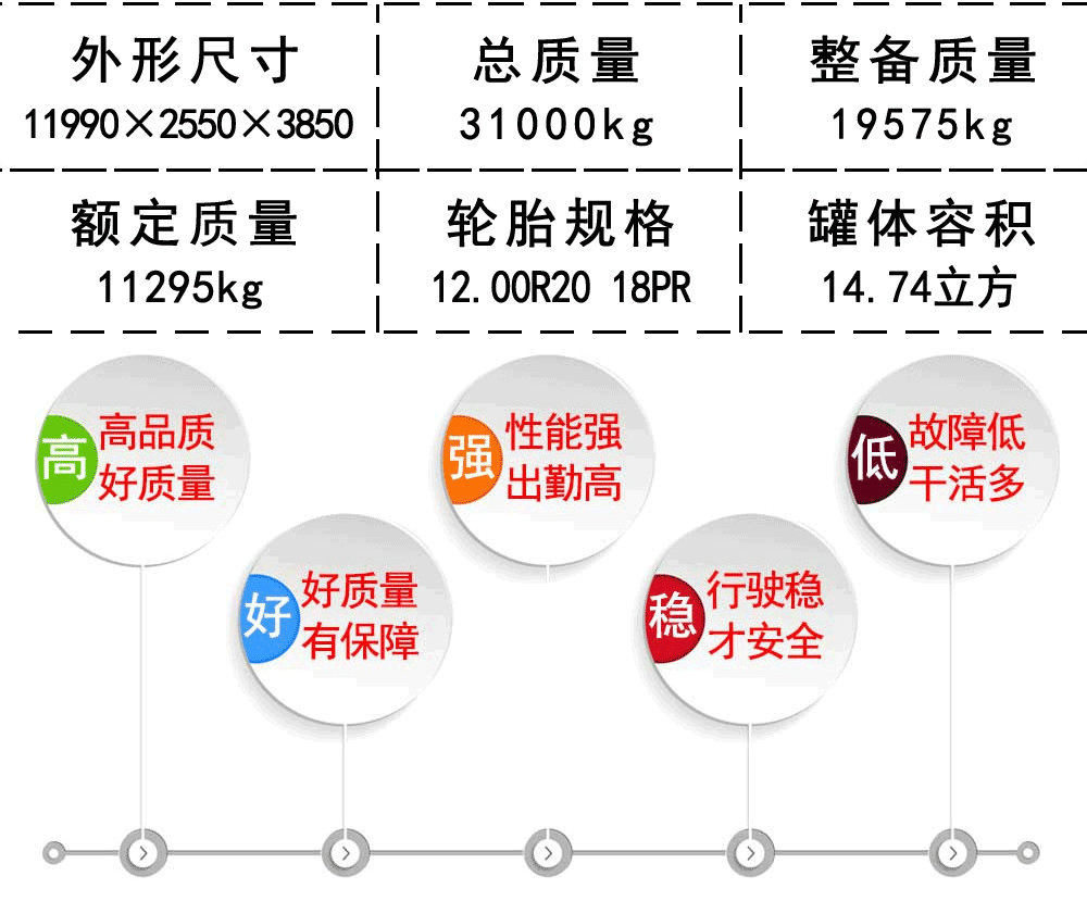 | 外形尺寸(mm) | 11990×2550×3850,3950 | 罐體容積(m3) | 14.74 |
