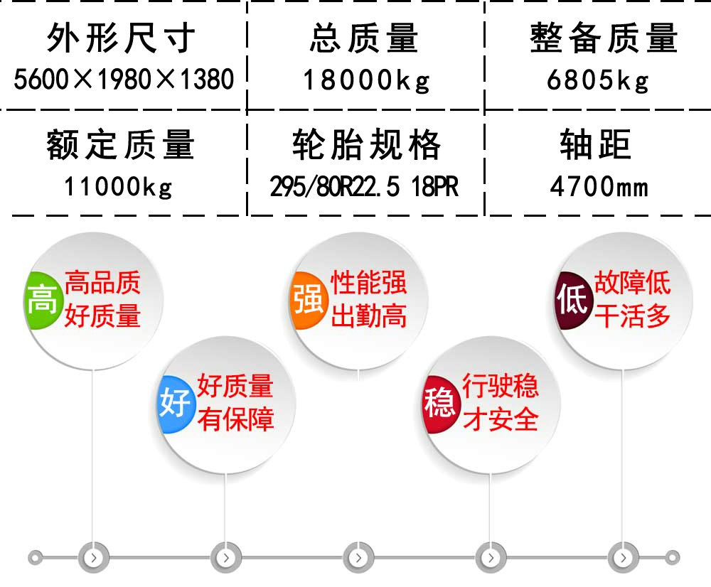 | 輪 胎 數(shù): | 6 | 輪胎規(guī)格 | 295/80R22.5 18PR,10.00R20 18PR,275/80R22.5 18PR |