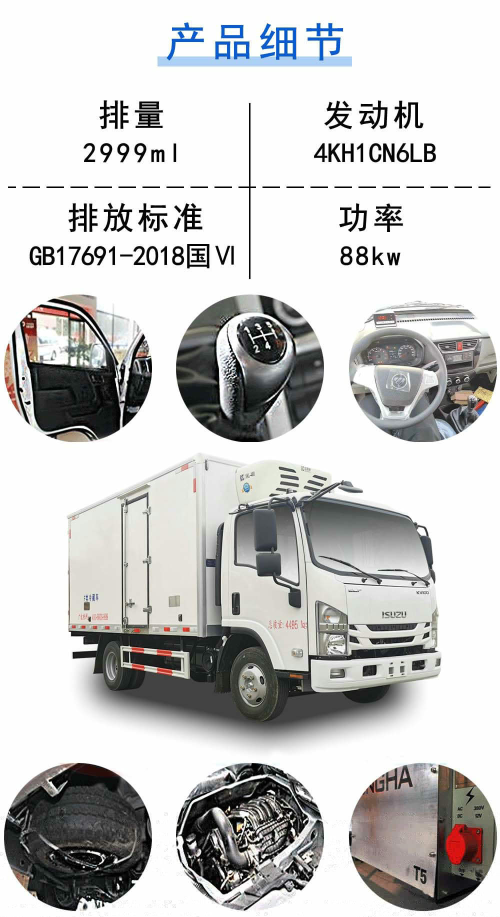 1,裝4KH1CN6LB型發(fā)動機時,凈功率為87kW,裝4KH1CN6HB型發(fā)動機時,凈功率為96kW,對應油耗值為11.45L/100km,11.41L/100km;2,車廂頂部封閉不可開啟;3,防護材料:Q235A碳鋼,連接方式:左右側(cè)面均與箱體底面采用焊接連接, 后部防護與車架采用焊接連接,后防護斷面尺寸(mm):60×120,后部防護離地高度(mm):440;4,隨底盤選裝駕駛室,選裝側(cè)開門;5,該底盤選裝制動系統(tǒng):裝液壓制動系統(tǒng)時,ABS及其控制器型號/生產(chǎn)企業(yè)對應關(guān)系為::APG3550500A/浙江亞太機電股份有限公司,CM4YL/廣州瑞立科密汽車電子股份有限公司;裝氣壓制動系統(tǒng)時,ABS及其控制器型號/生產(chǎn)企業(yè)對應關(guān)系為:CM4XL-4S/4M/廣州瑞立科密汽車電子股份有限公司;6,前懸/軸距/后懸(mm)對應關(guān)系:1120/3365/1510,1110/3360/1525。 |