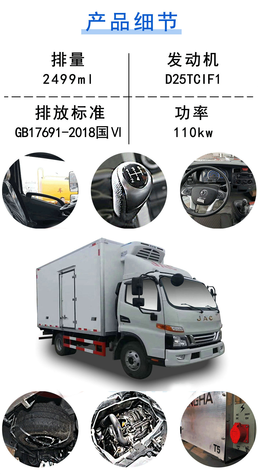 | 其他 | 1.車廂頂部封閉不可開啟,選裝導(dǎo)流罩;2.選裝單開門貨廂,選裝不同廠家但制冷量相同的冷藏機組;3.發(fā)動機D25TCIF1對應(yīng)的油耗申報值(L/100km)為11.4;4.側(cè)面及后下部防護裝置材料為Q235A,連接方式為螺栓連接,后部防護裝置斷面尺寸(長×寬):120mm×60mm,離地高度為490mm;5.ABS控制器型號/廠家:VIE ABS-Ⅱ/浙江萬安科技股份有限公司;6.選裝側(cè)后防護,側(cè)面及后下部防護裝置材料為Q235,連接方式為螺栓連接,后部防護裝置斷面尺寸(長×寬):120mm×60mm,離地高度為440mm;7.選裝液壓尾板,尾板收起狀態(tài)的水平長度為295mm當(dāng)選裝液壓尾板時后部防護材料為Q235,連接方式為螺栓連接,后部防護裝置斷面尺寸(長×寬):120mm×60mm離地高度為460mm;8.選裝后部燈具 | ||